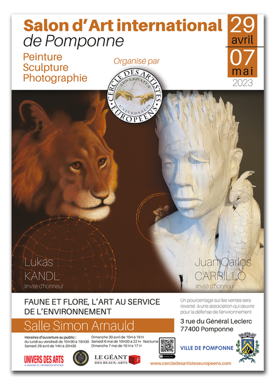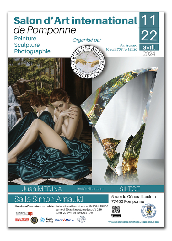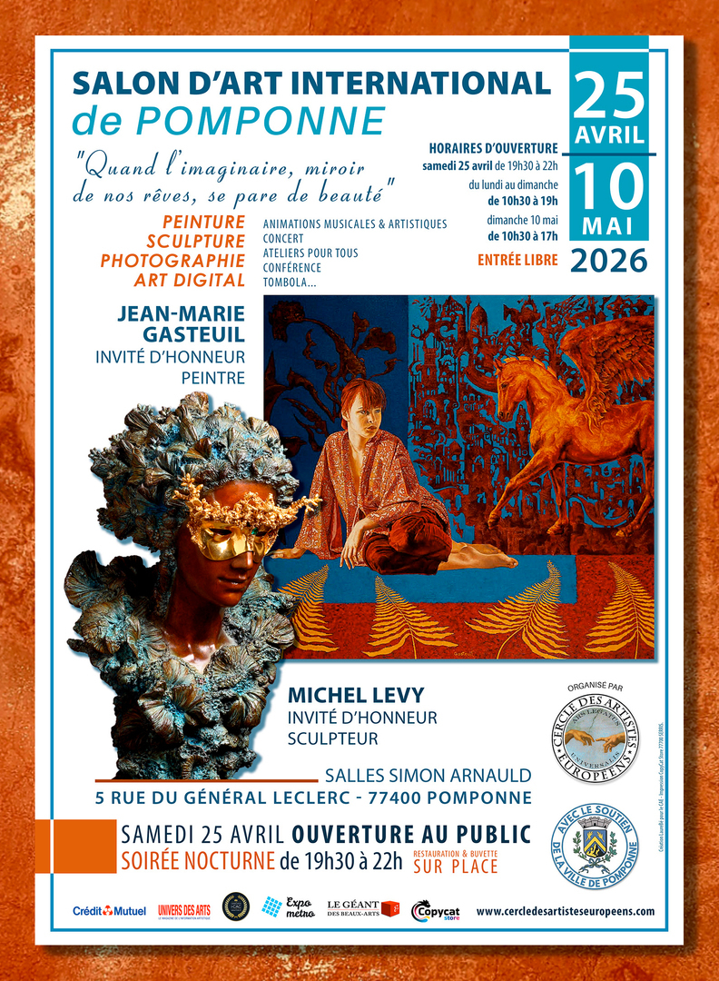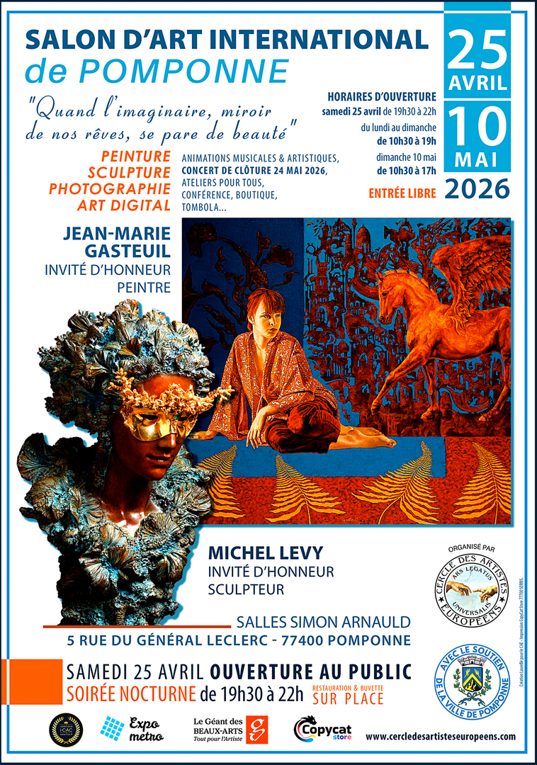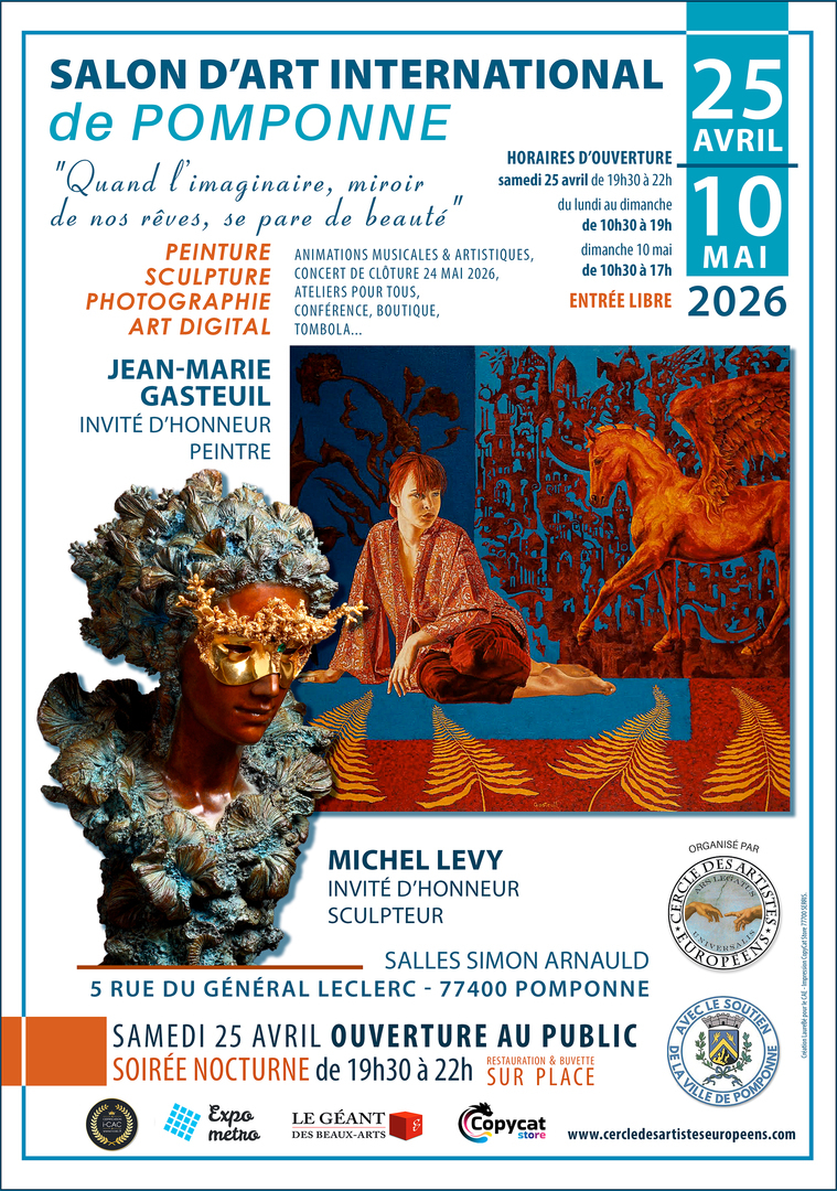 Ne manquez pas notre prestigieux évènement annuel, co-organisé avec la Ville de Pomponne, où l'art sous toutes ses formes est célébré et où les grandes signatures de l'art et les artistes internationaux viennent exposer leurs œuvres, échanger et partager leur passion. Ce Salon d'Art unique vous transportera dans un voyage artistique empreint de passion et de créativité.