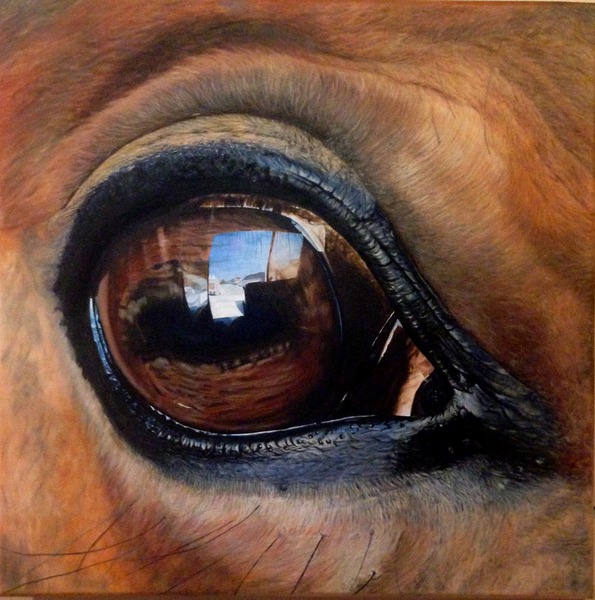 Dans un style plutôt hyperréaliste, et parfois de manière un peu décalée, mon travail se distingue surtout par le choix d’un cadrage serré, axé sur une posture singulière ou sur le regard, si représentatif de l’âme animale et par lequel transparaissent tant d’émotions… Aussi, je privilégie des fonds assez neutres pour laisser toute sa place à l’animal, et même des fonds inexistants pour les plans très serrés où le sujet occupe toute la toile.