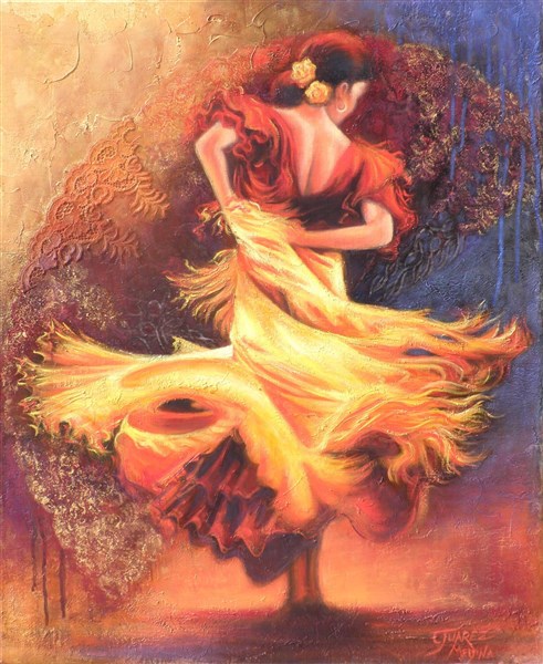 De ses origines andalouses, elle hérite son attirance pour la lumière, la couleur et le mouvement. Ces trois clés, en harmonie avec son parcours personnel, lui ouvrent la voie vers de nouveaux horizons empreints de perception, de sensibilité, de sagesse et de visions. Elle joue avec les couleurs. Celles-ci deviennent un miroir qui renvoie le reflet de la vie rythmée par le mouvement et la lumière.