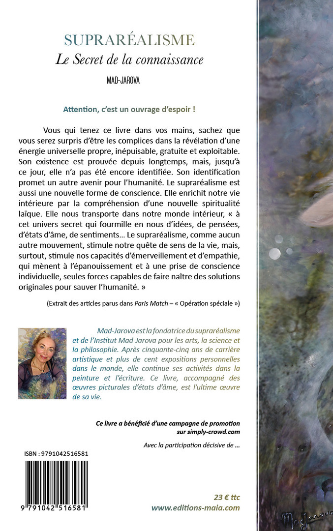 Après une carrière artistique de plus de 50 ans, Mad-Jarova est la Fondatrice du Supraréalisme, nouveau courant de pensée, style artistique et scientifique. A travers